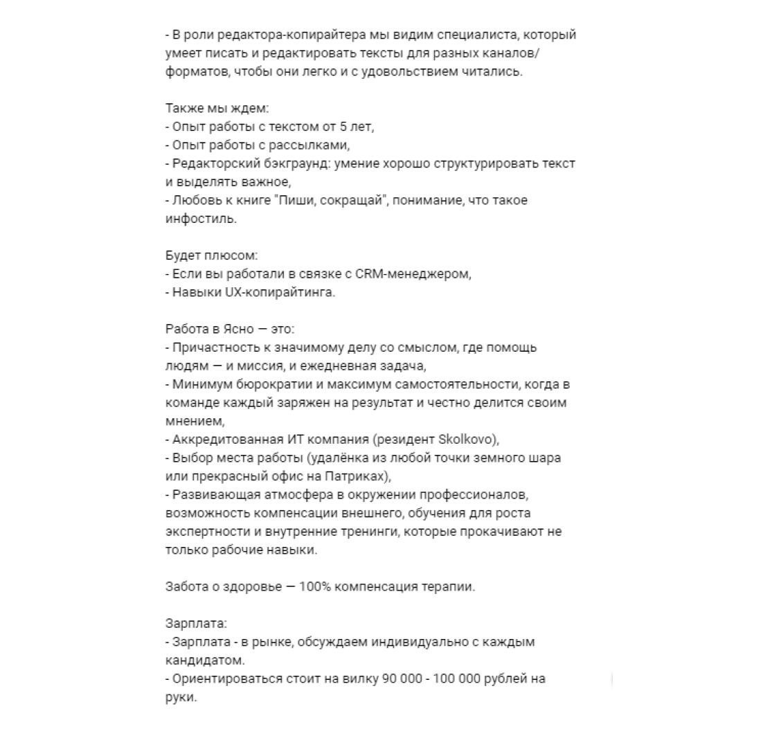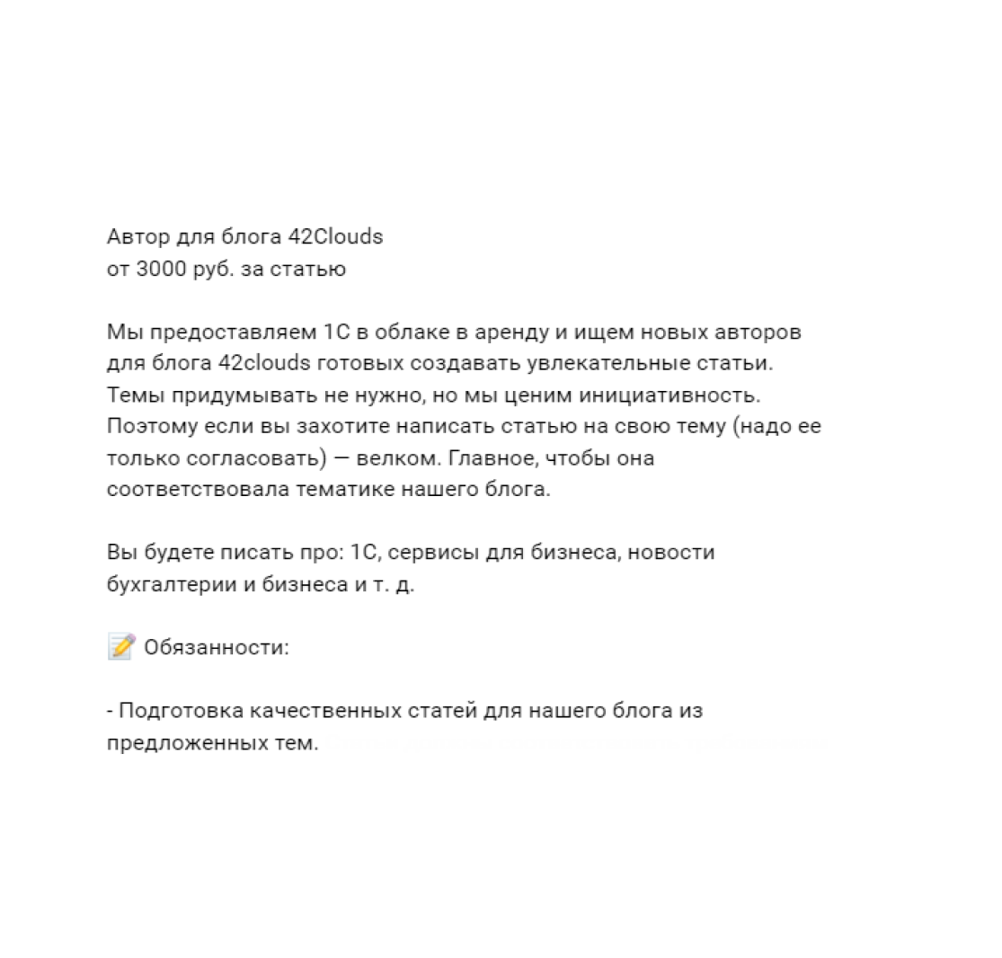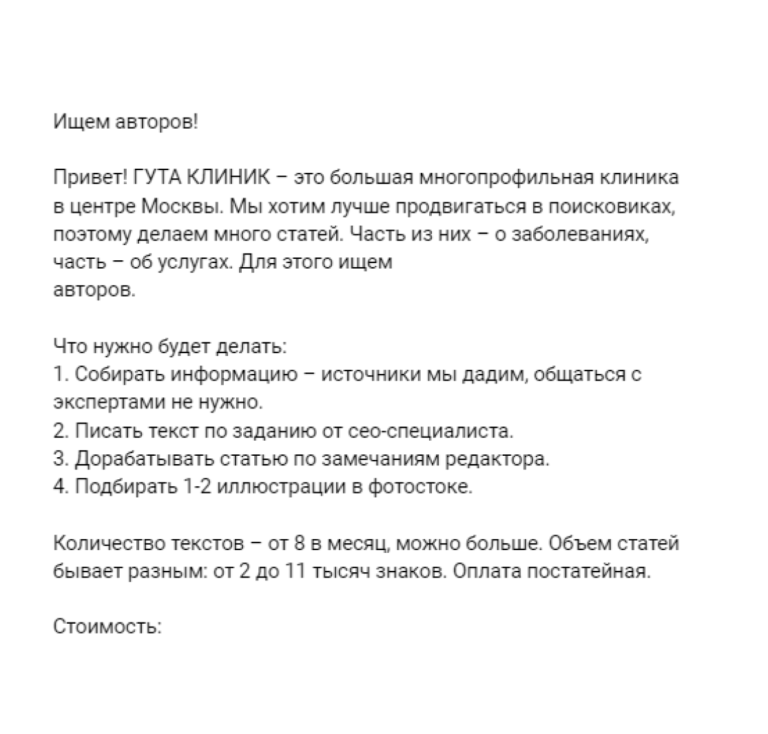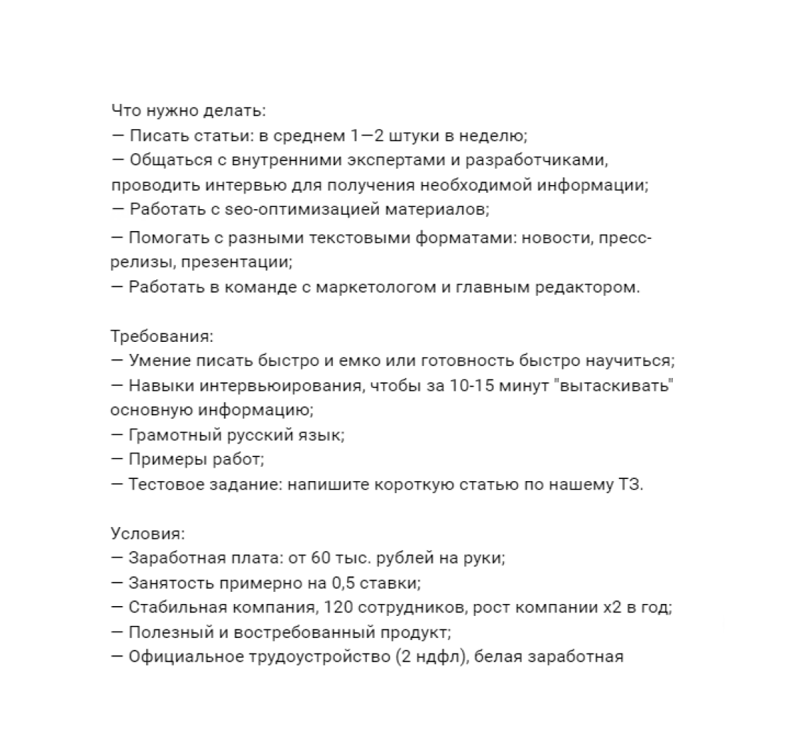 У нашей школы хорошая репутация, поэтому периодически мы получаем и прямые запросы на копирайтеров.