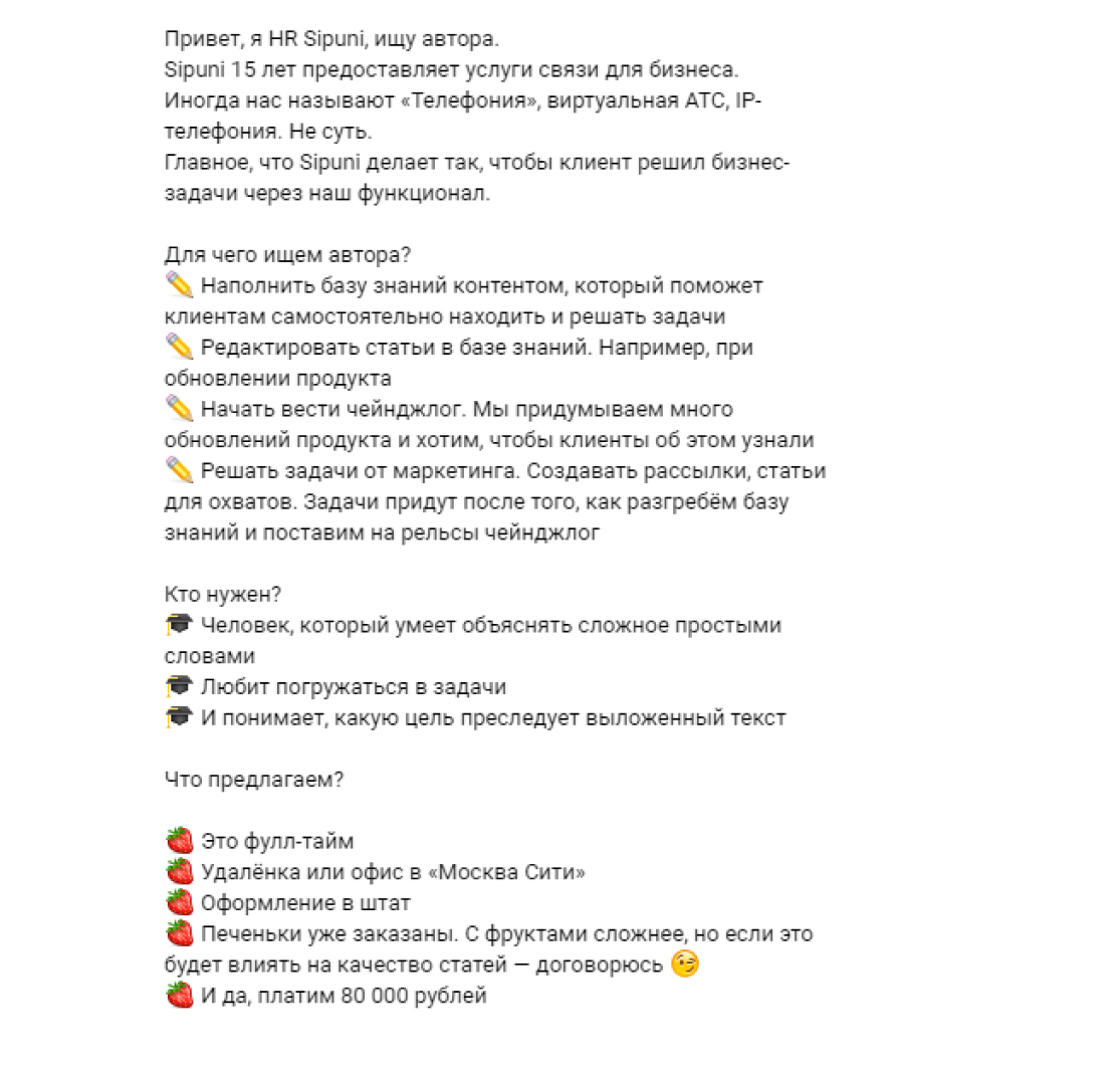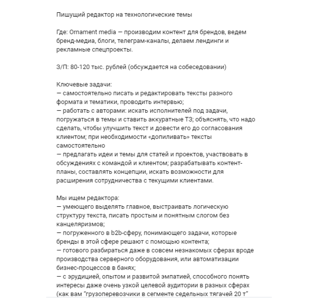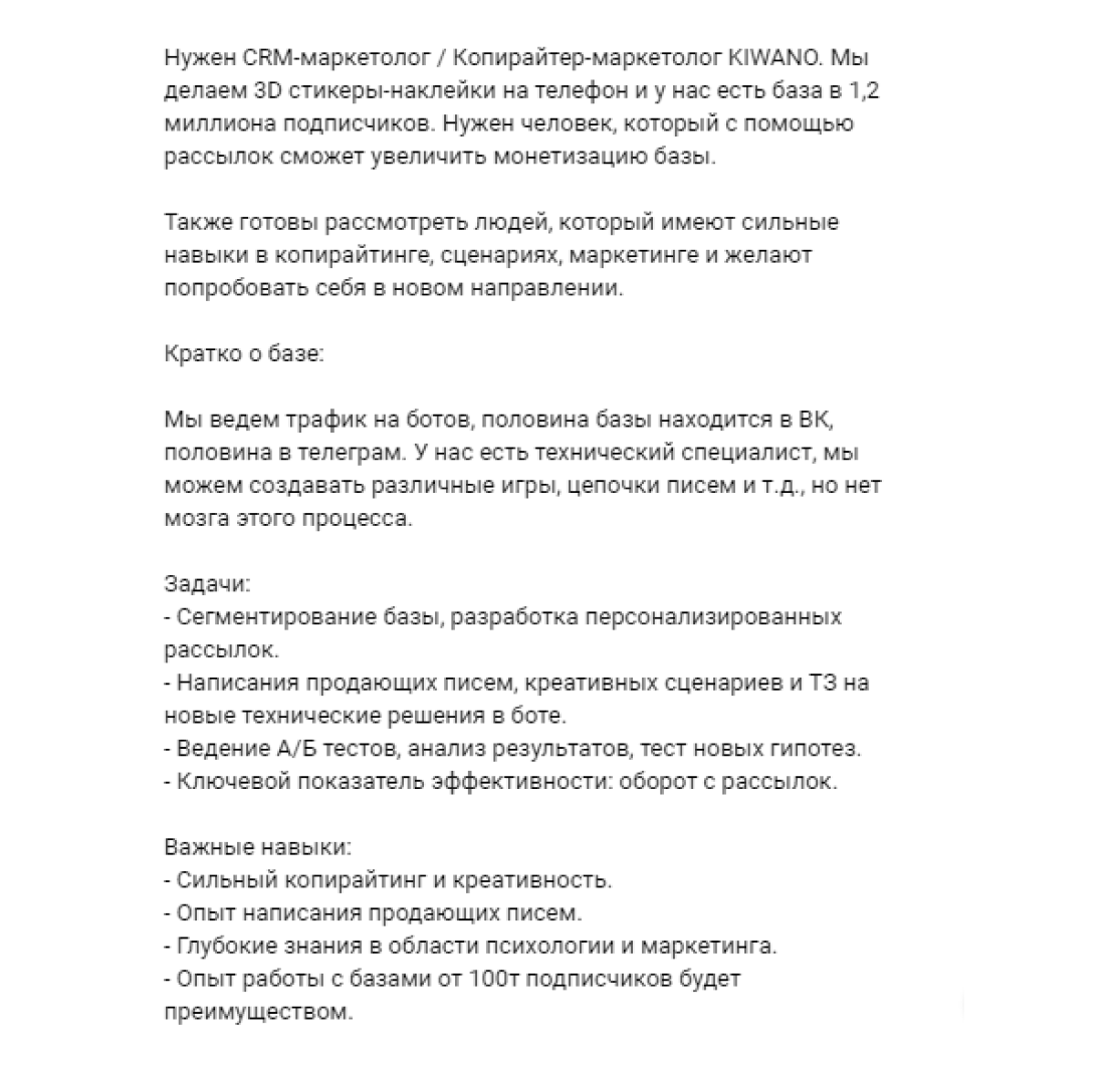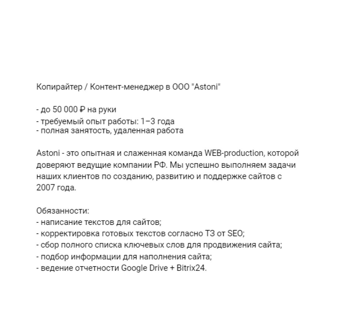 У нашей школы хорошая репутация, поэтому периодически мы получаем и прямые запросы на копирайтеров.