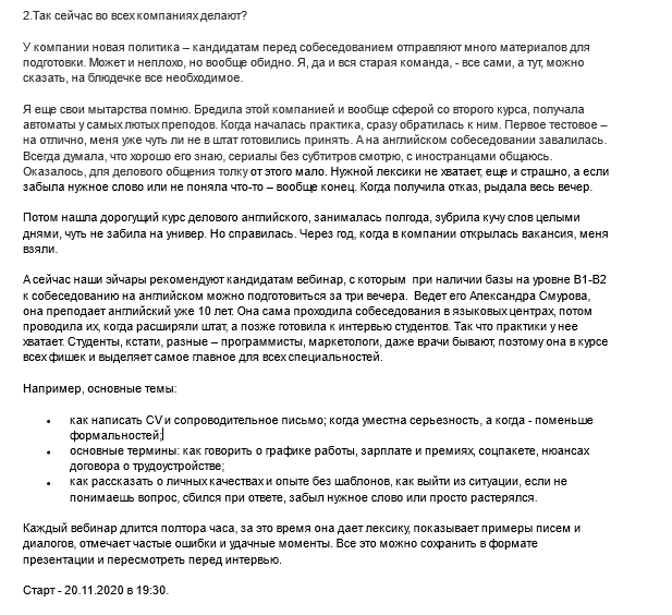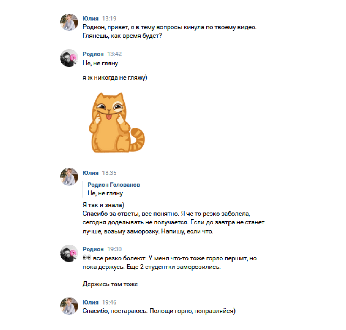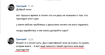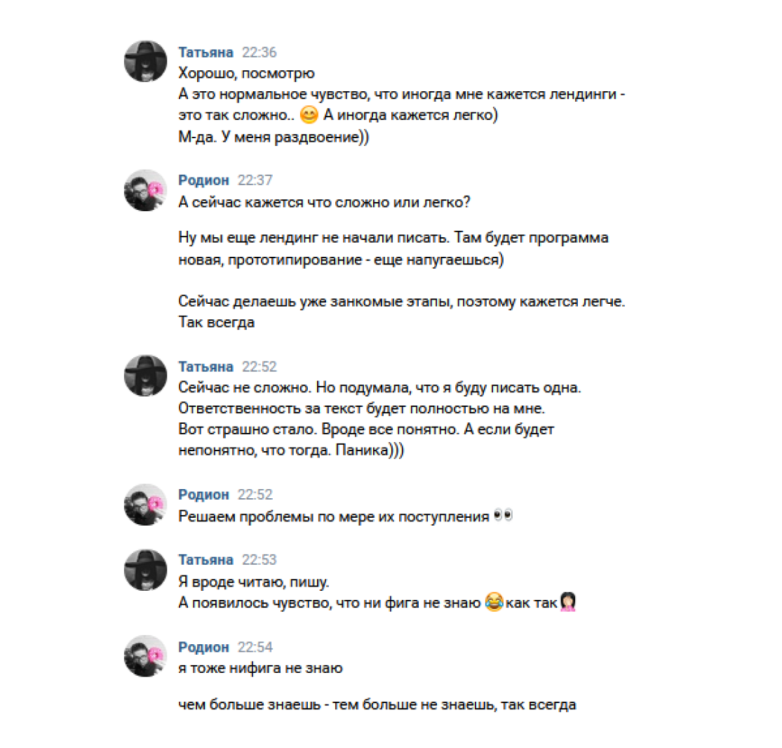 Ведь у нас были ситуации, когда новички получали учебные материалы, изучали их самостоятельно и слали текст на оценку.